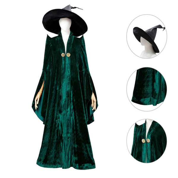 - Professor Minerva McGonagall's Cosplay Costume dark green robe is perfect for a Halloween party, picture show, stage show daily wear, etc. It's also a fantastic gift for Harry Potter cosplay fans.