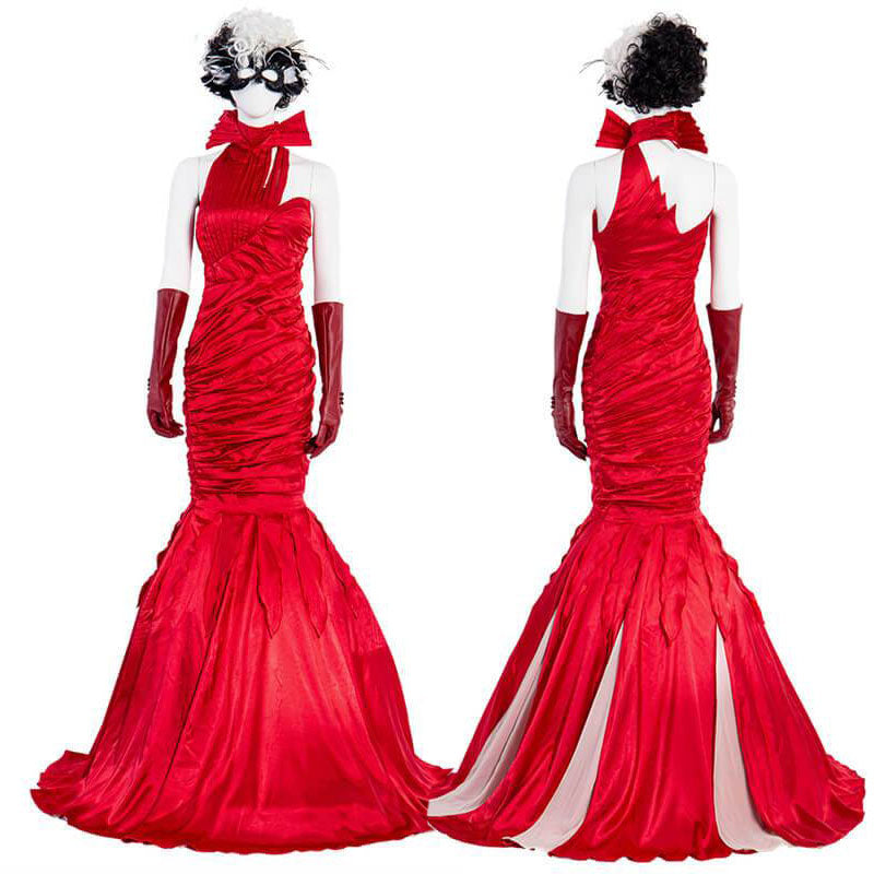 2021 Cruella De Vil Red Dress Emma Stone Cosplay Wig Costumes ACcosplay