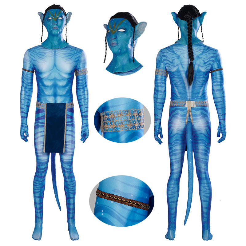 2022 Avatar 2 The Way of Water Jake Sully Cosplay Costume Blue Jumpsuit