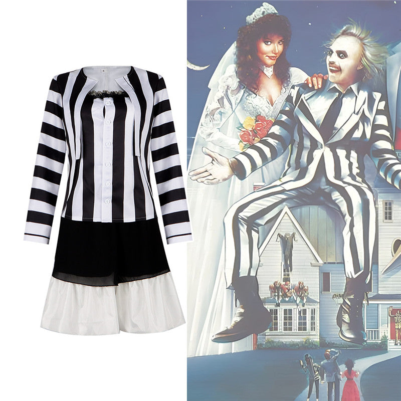 Lydia Deetz Dress Beetlejuice Lydia Black White Stripe Cosplay Costume Halloween Carnival Suit