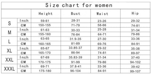 | Note: All above charts are Finished Costume size chart! | |||||