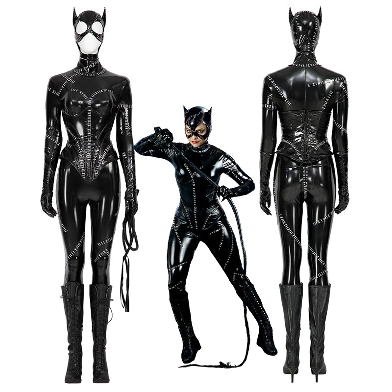 Batman Returns 1992 Catwoman Cosplay Costume Michelle Pfeiffer Catwoman Leather Bodysuit Outfit