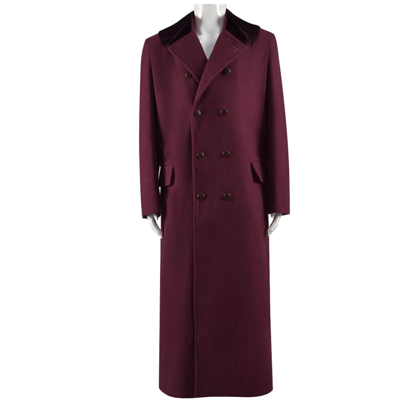 Fourth 4th Doctor Dark Red Long Trench Wool Coat Doctor Who Cosplay Costume