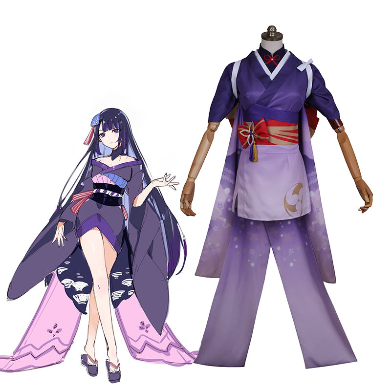 Genshin Impact Raiden Shogun Costume Gameplay Baal Cosplay Dress Purple Kimono Ying Version