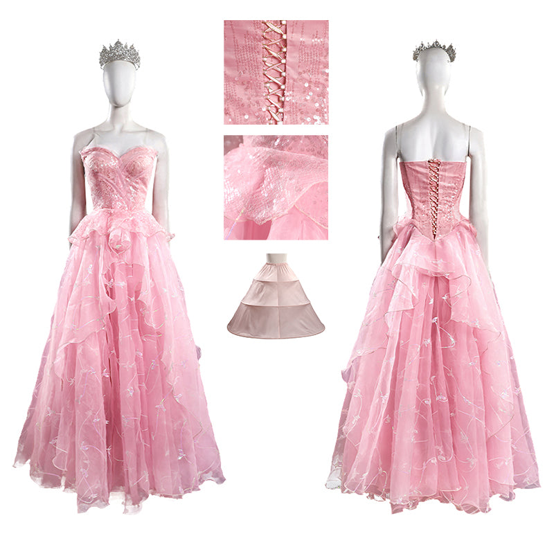 Glinda Wicked Witch Pink Stripe Suit Halloween Costume Outfit ACcosplay