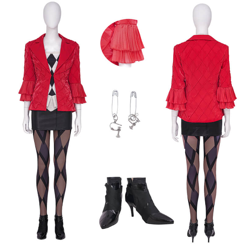 Harley Quinn Red and Black Costumes Halloween Cosplay Suit Costumes 2021 Adults