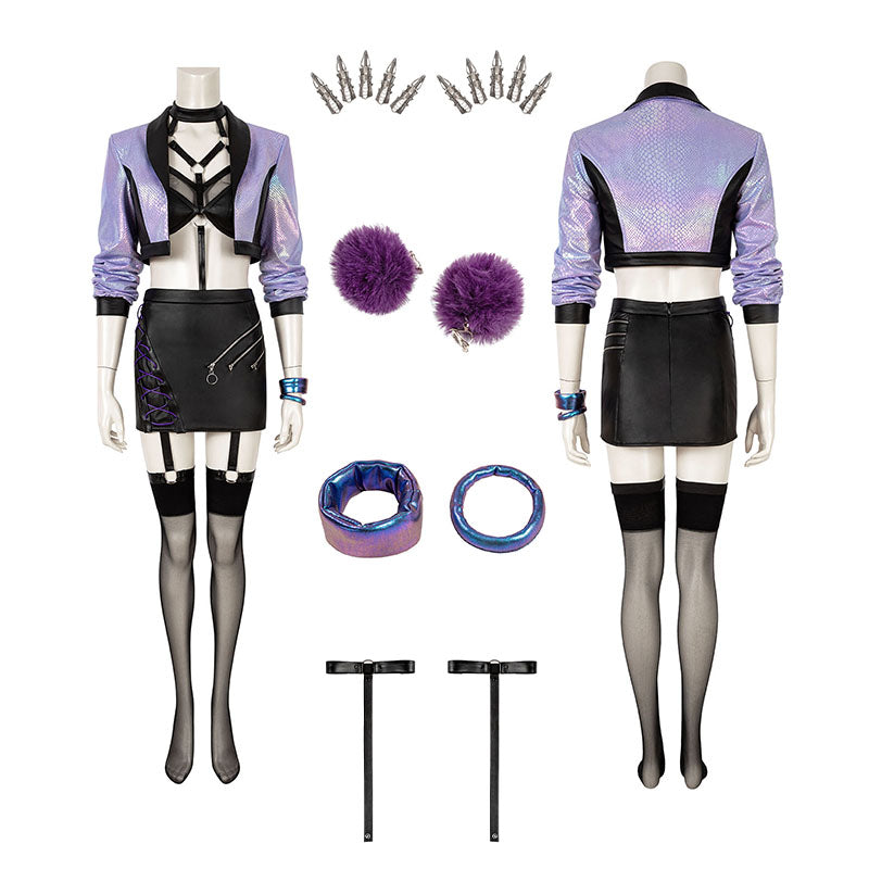 KDA Evelynn Cosplay League Of Legends Costume Purple Sexy Uniform Bra Coat Skirt