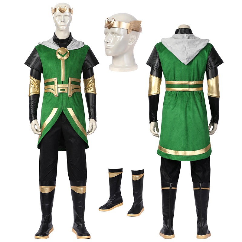 Kid Loki Cosplay Costume Superhero Green Suit Halloween Outfit