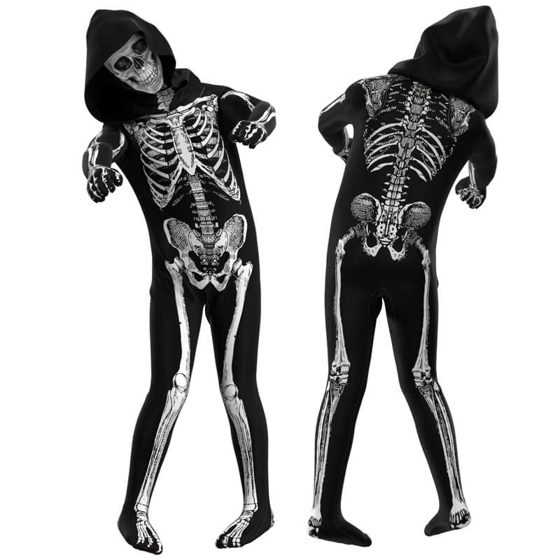 Kids Adults Scariest Skeleton Halloween Bodysuit Unisex Zentai Halloween Party Suit Costumes with Hood