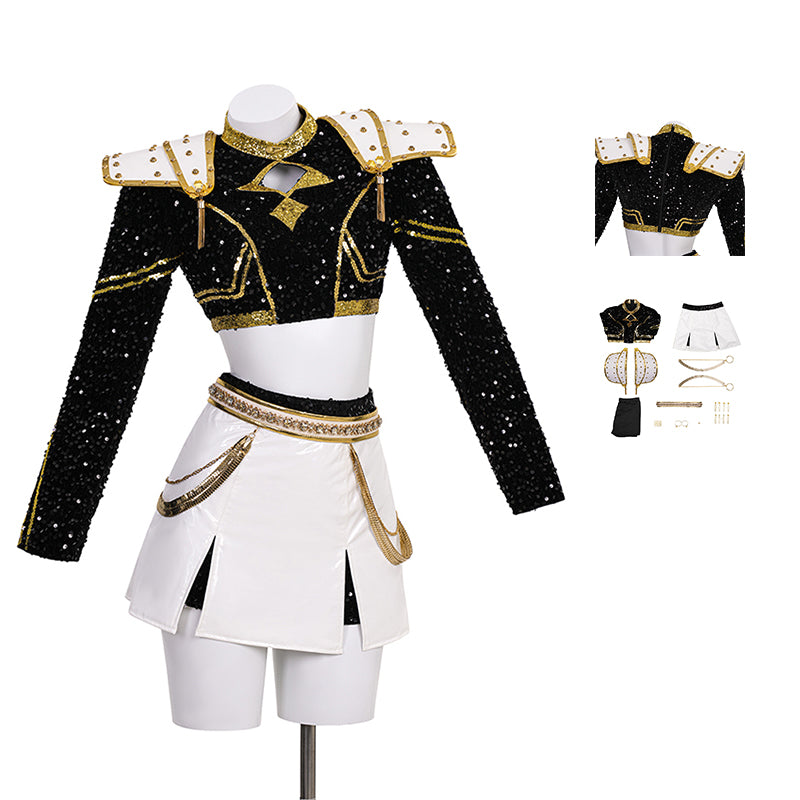 Kpop Demon Hunters Zoey Cosplay Costume Black Golden Dance Suit Halloween Fancy Outfit ACcosplay
