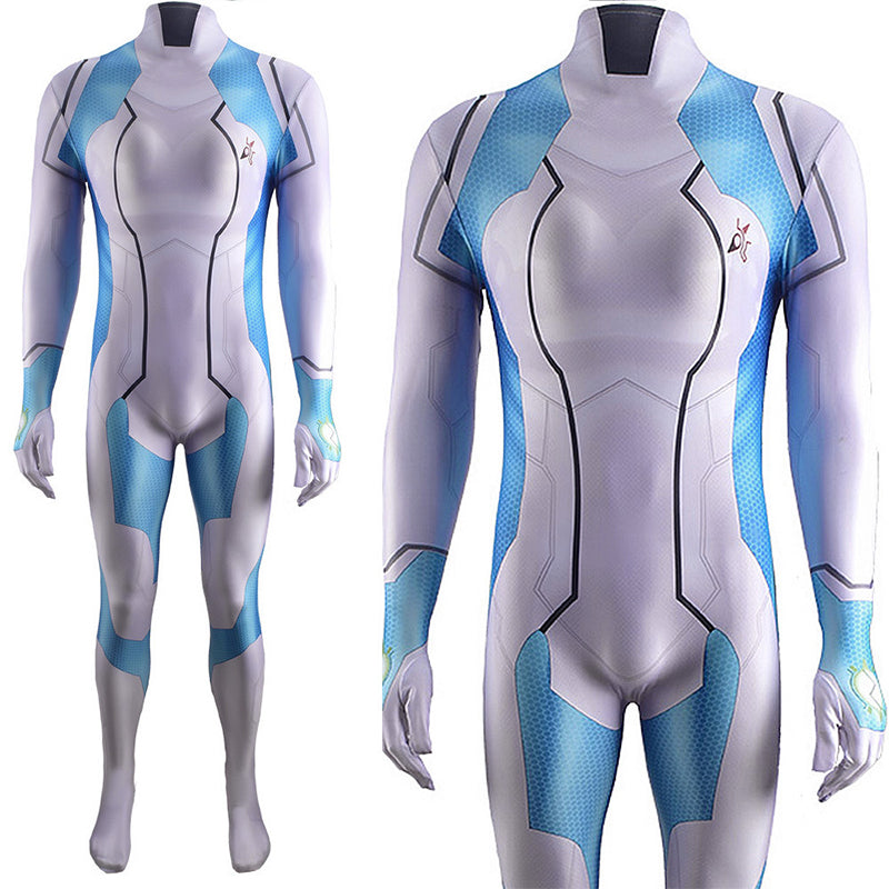 Metroid Dread Gameplay Samus Aran Zero Suit Blue Jumpsuit Adult Kids Costume