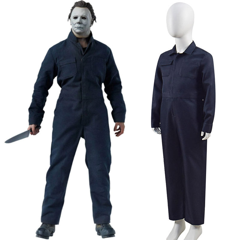 Kids Michael Myers Costume Horror Killer Cosplay Blue Jumpsuit Halloween Outfit