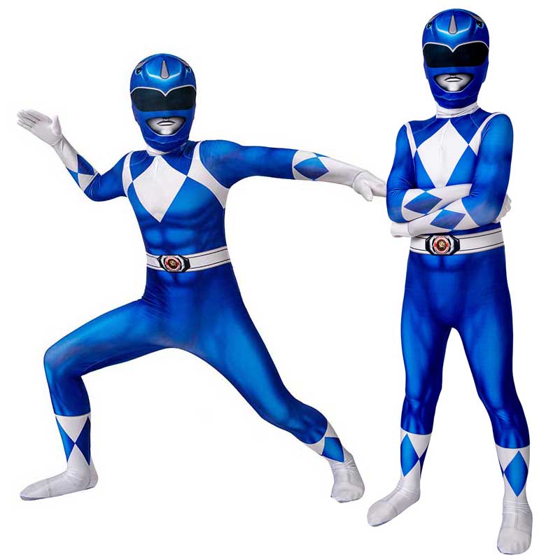 Power Rangers Blue Ranger Costume for Kids Suit Zentai Jumpsuit Halloween
