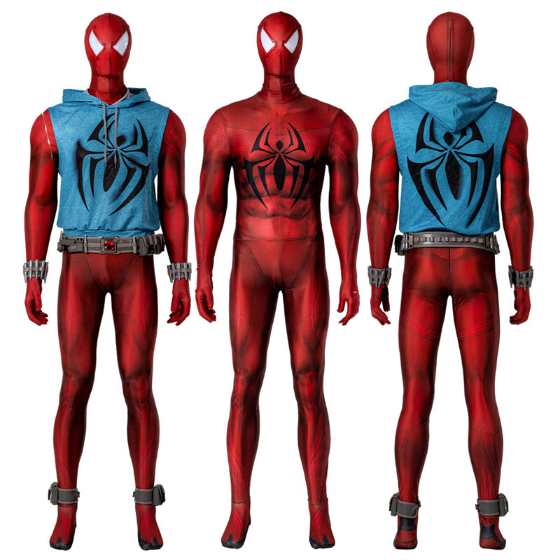 Scarlet Spider Ben Reily Cosplay Costume Spider Man Jumpsuit Vest Halloween Carnival Suit