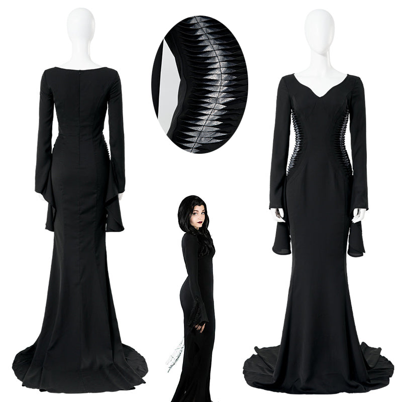 The Addams Family Morticia Addams Cosplay Costume Black Vintage Dress Halloween Carnival Suit