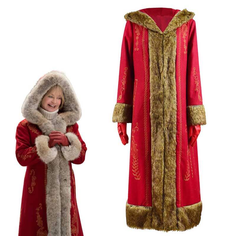 The Christmas Chronicles 2 Mrs. Claus Cosplay Costume Red Wool Long Coat Outfit