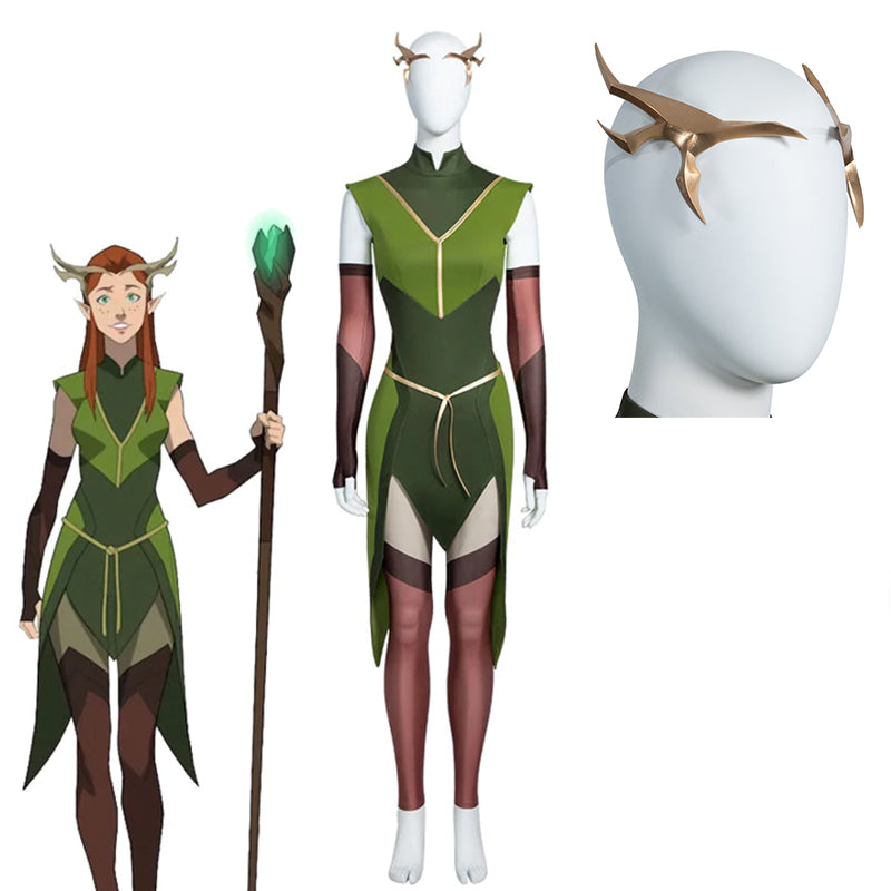 The Legend of Vox Machina Keyleth Cosplay Costume Green Suit With Horn Crown