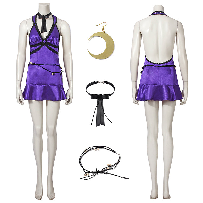 Tifa Lockhart Cosplay Costumes Final Fantasy VII Remake Purple Dress Halloween Suit