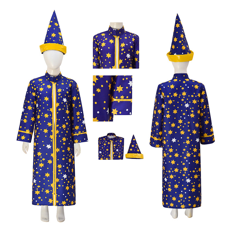 Unisex Kids Wizard Cloak with Stars Cape And Hat Witch Cloak ACcosplay