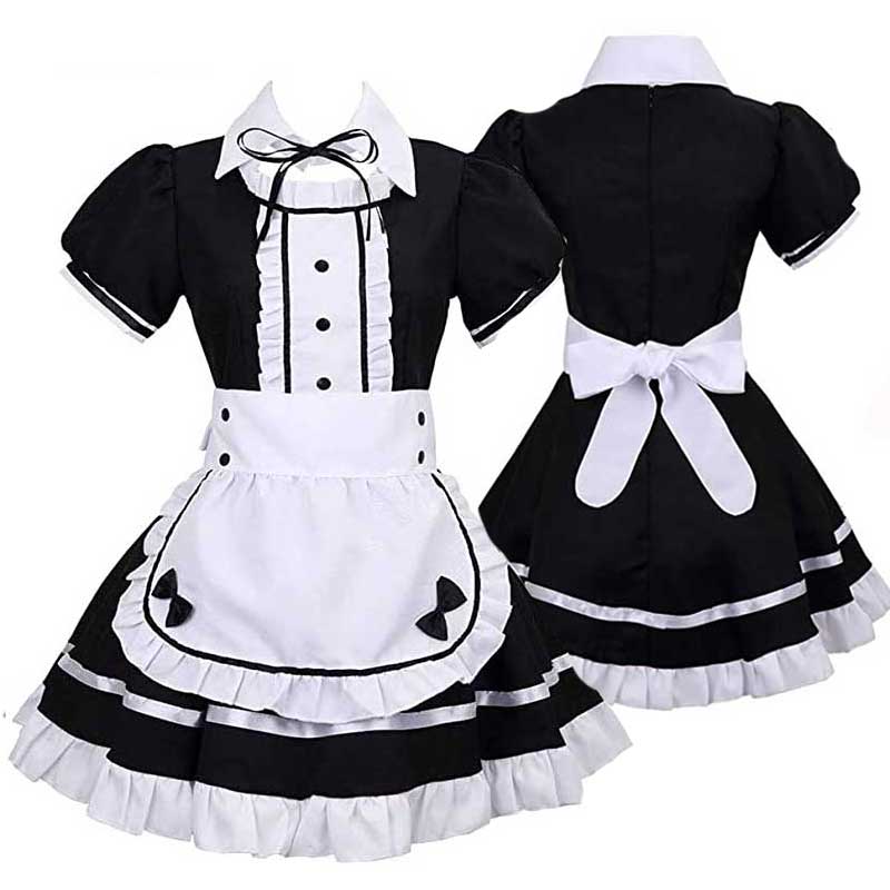 Women Maid Dress Short Sleeve Lolita Dress French Apron Maid Fancy Cosplay Costume